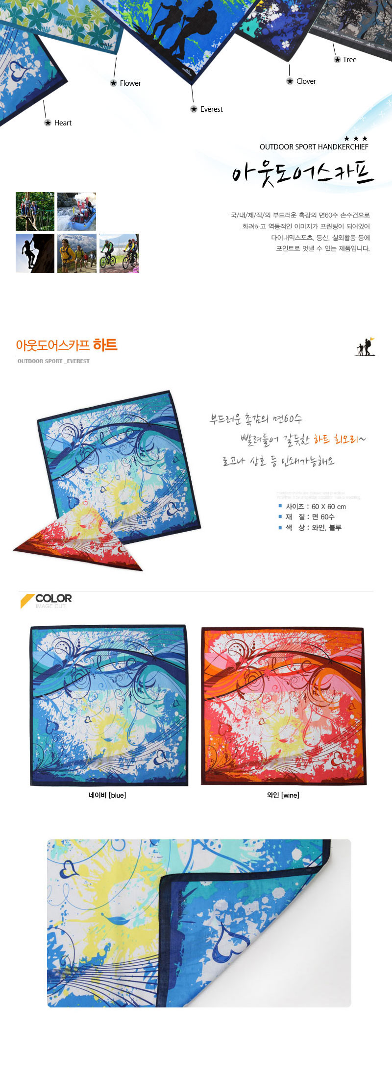 •Size: 600X600mm/60수 •블루,와인 ※ 사이즈는 ±2cm정도 오차가 있을 수 있습니다. / 더 많은 제품은 홈페이지에서 확인하세요.