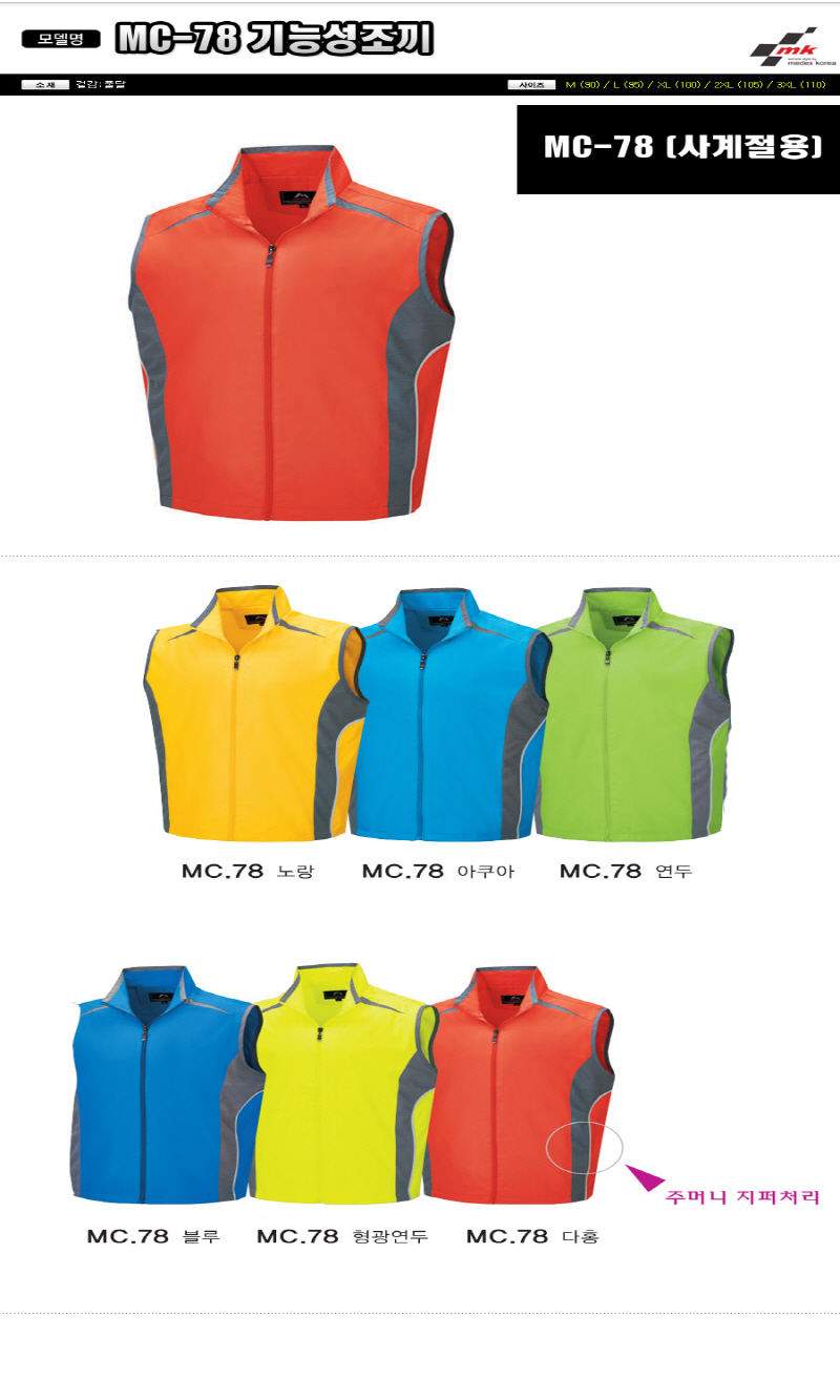 •Size : M, L, XL, 2XL, 3XL •소재 : 풀달 ※단가변동 있을 수 있습니다. 제품 색상은 인쇄된 것이므로 실제 제품과 다소 차이가 있을 수 있습니다. MC-78