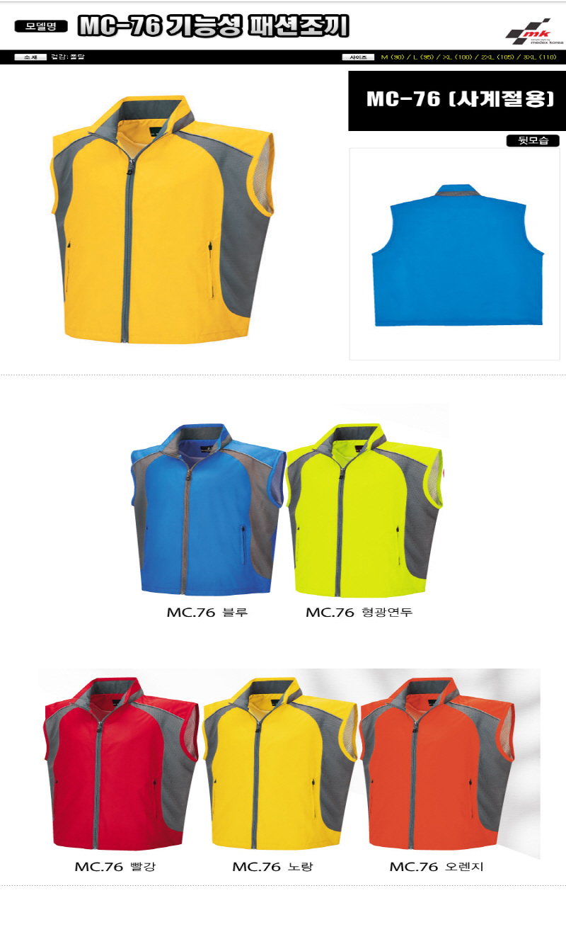 •Size : M, L, XL, 2XL, 3XL •소재 : 풀달 ※단가변동 있을 수 있습니다. 제품 색상은 인쇄된 것이므로 실제 제품과 다소 차이가 있을 수 있습니다. MC-76