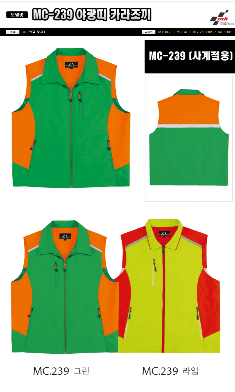 •Size : M, L, XL, 2XL, 3XL •소재 : T/C (안감-망사) ※단가변동 있을 수 있습니다. 제품 색상은 인쇄된 것이므로 실제 제품과 다소 차이가 있을 수 있습니다. MC-239