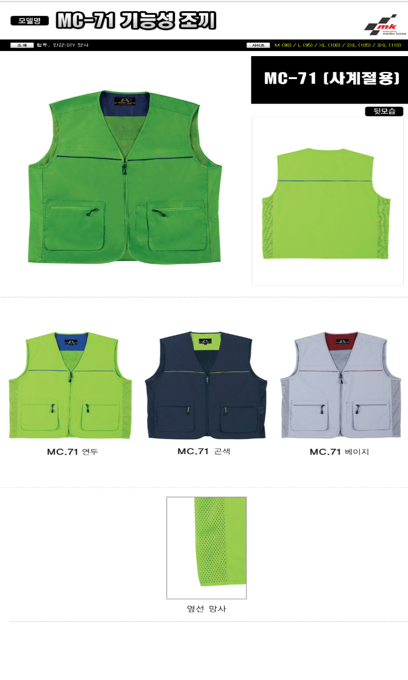 MC-71 •Size : M, L, XL, 2XL, 3XL •소재 : 립주, 안감:DTY 망사 ※단가변동 있을 수 있습니다. 제품 색상은 인쇄된 것이므로 실제 제품과 다소 차이가 있을 수 있습니다.