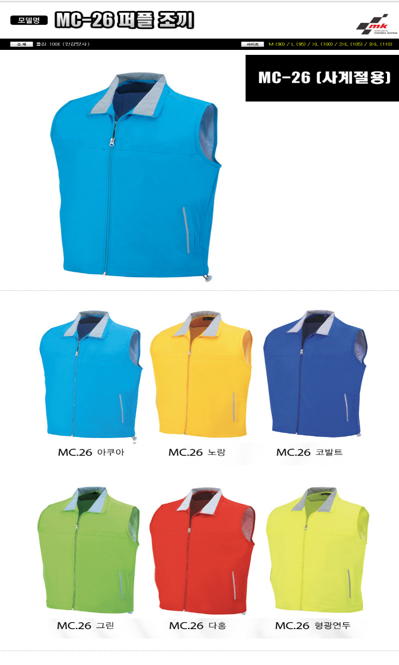 MC-26 •Size : M, L, XL, 2XL, 3XL •소재 : 폴리 100% (안감:망사) ※단가변동 있을 수 있습니다. 제품 색상은 인쇄된 것이므로 실제 제품과 다소 차이가 있을 수 있습니다.