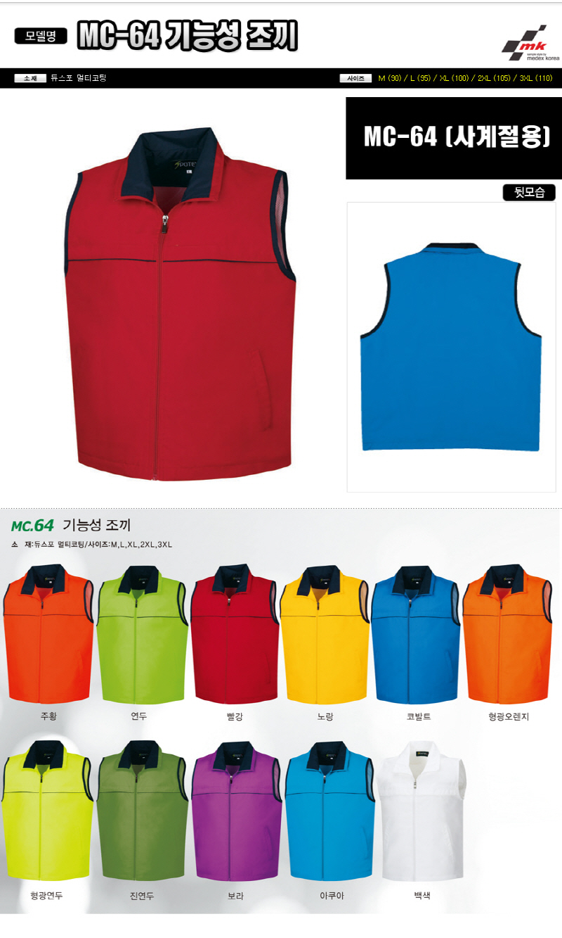•Size : M, L, XL, 2XL, 3XL •소재 : 듀스포 멀티코팅 ※단가변동 있을 수 있습니다. 제품 색상은 인쇄된 것이므로 실제 제품과 다소 차이가 있을 수 있습니다. MC-64