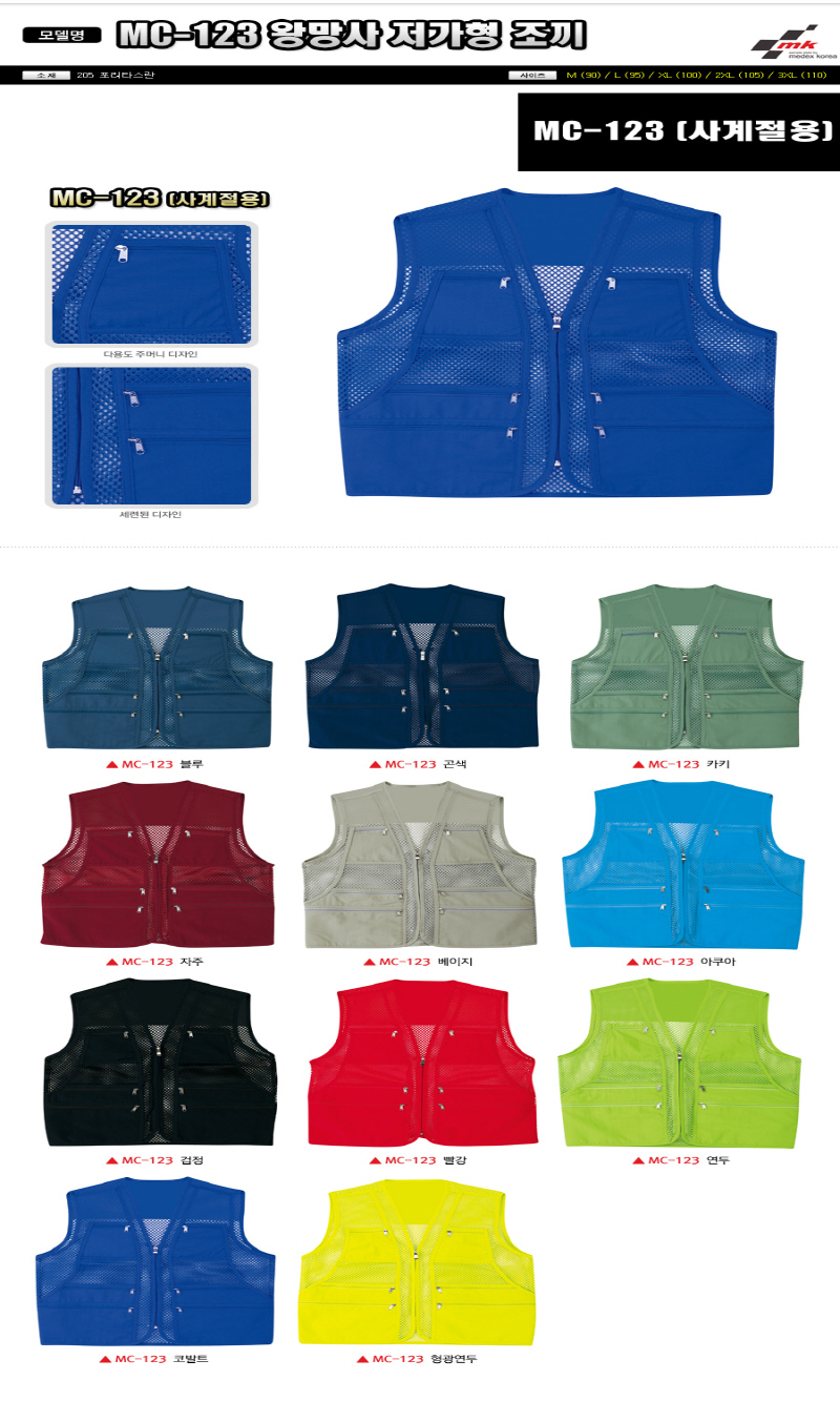 •Size : L, XL, 2XL, 3XL •소재 : 205 포리타스란 ※단가변동 있을 수 있습니다. 제품 색상은 인쇄된 것이므로 실제 제품과 다소 차이가 있을 수 있습니다. MC-123