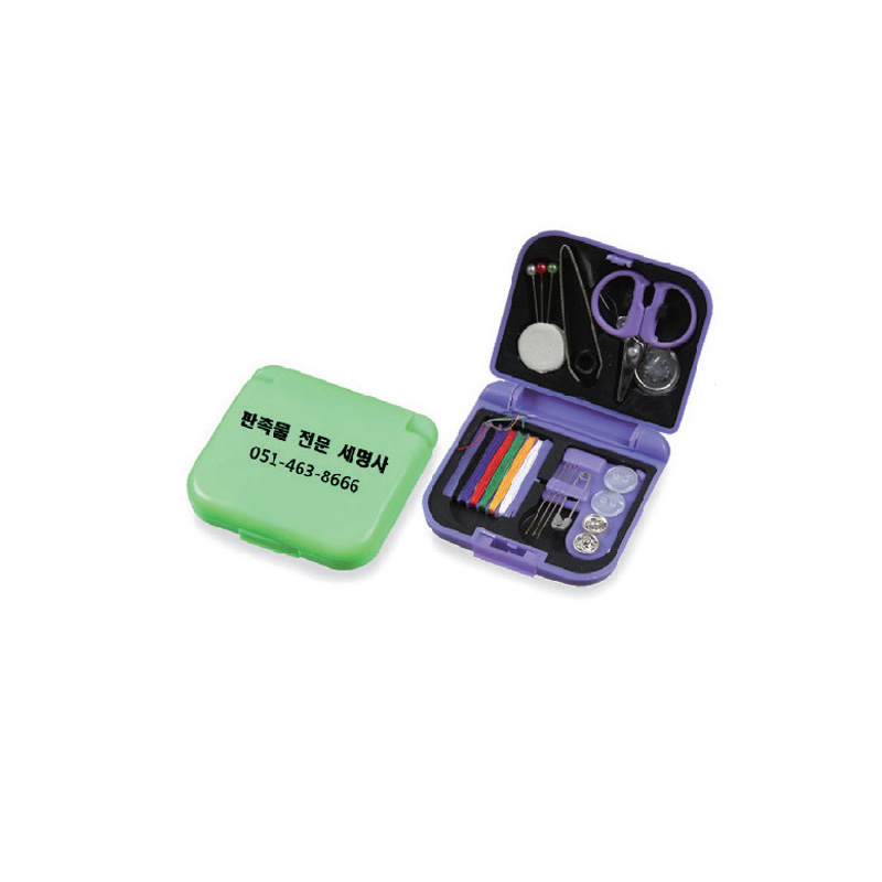 •70x65x15 • 6색실, 바늘, 단추2개, 옷삔, 집게, 바늘꽂이, 효자침, 가위
