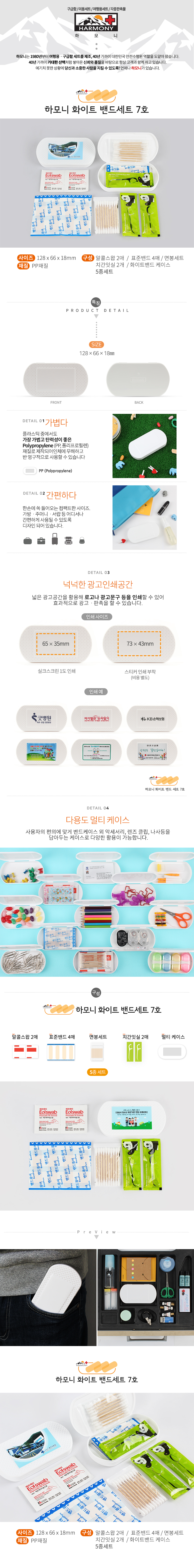 •수량 : 400EA •SIZE : 128x66x18 (mm) •스티커작업 별도 •표준밴드 4매,알콜스왑 2매,10p면봉,치간잇실 2매 •1BOX : 400EA ※상품 내 모든 구성상품들은 수급상황에 따라 예고없이 변동 될 수 있습니다.