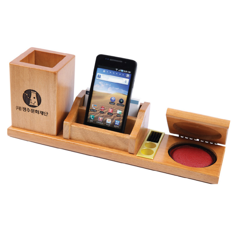 원목 인주 필통라운드 명함폰거치대