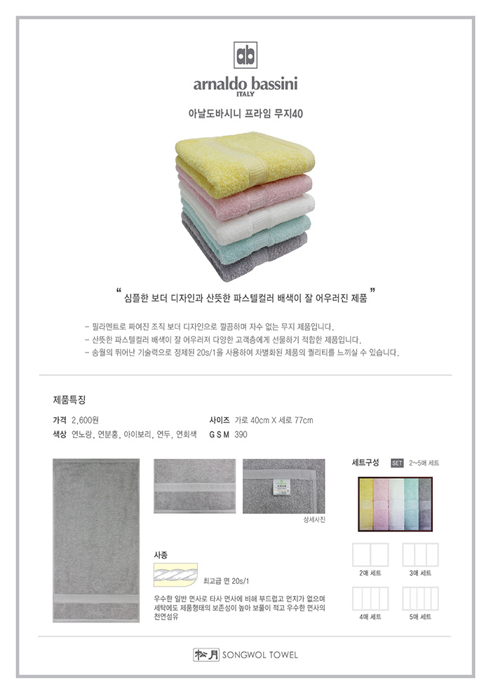 ※ 나염 청색(1도) 50장 이상 한쪽 무료, 자수·전사 인쇄 유료 / 모든 타월 세트 작업 가능