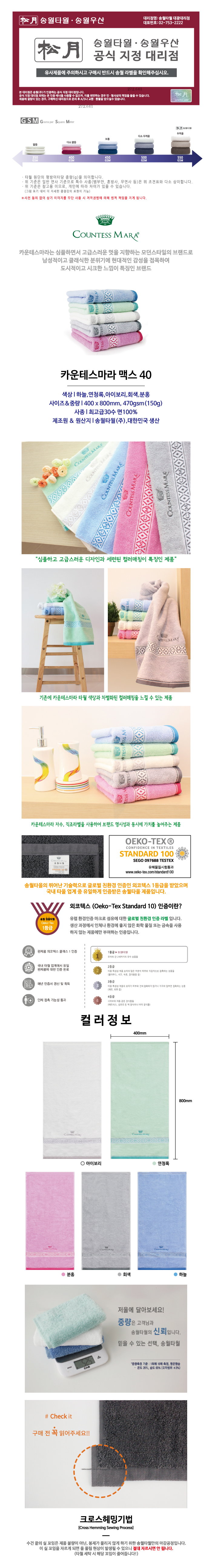 (전사인쇄가능) •Size : 40 x 80 cm 150g •전사비 : 250원 추가/100장미만 2만5천원 •전사용 아이보리,하늘,분홍 주문 가능 ※ 나염 청색(1도) 50장 이상 한쪽 무료, 자수·전사 인쇄 유료 / 모든 타월 세트 작업 가능