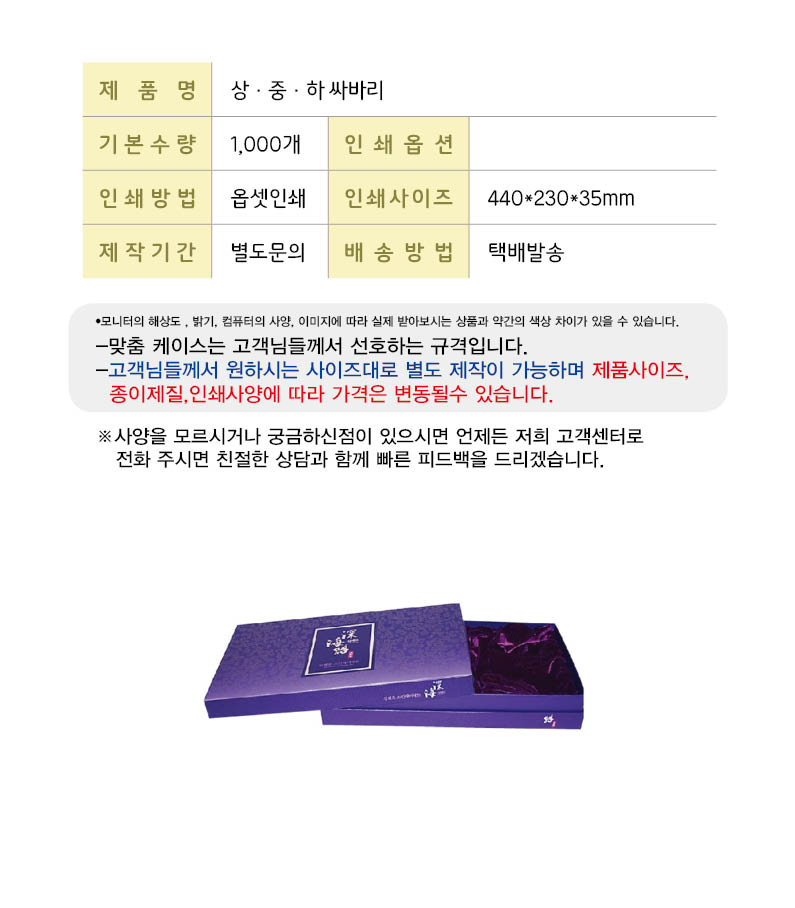기본수량이하 주문시 고객센터로 전화 주시면 자세히 안내해 드립니다.
