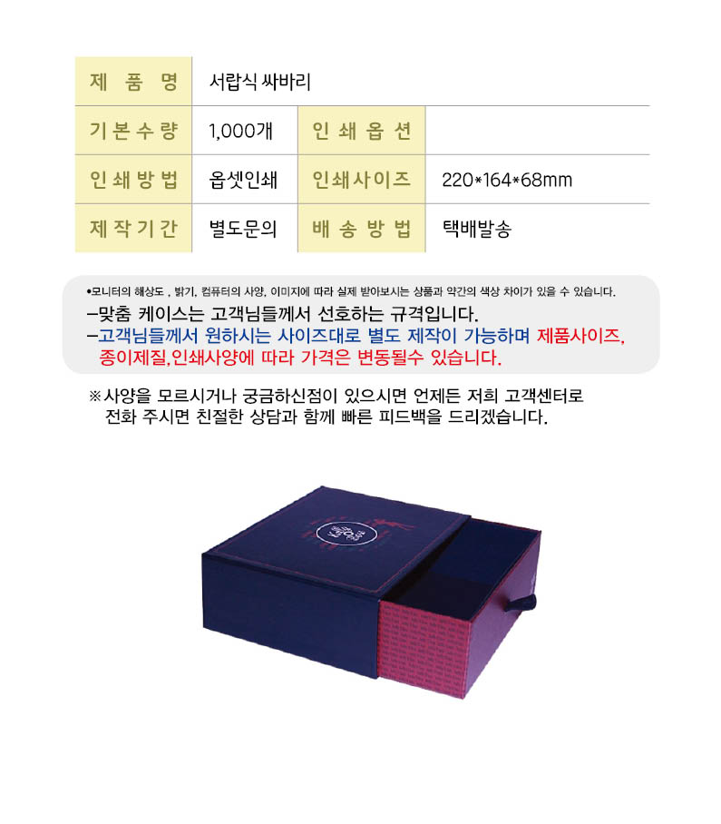 •기본수량 1,000개 •Size : 220x164x68 mm